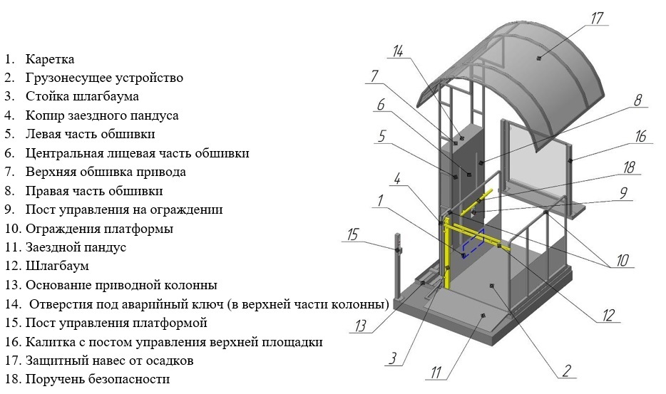 Принципиальная схема подъемника: