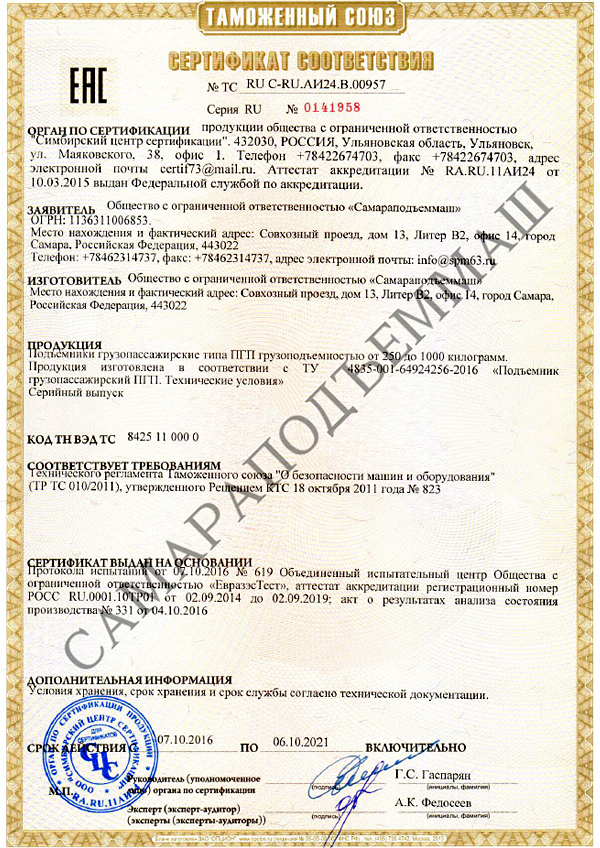 Сертификат соответствия: